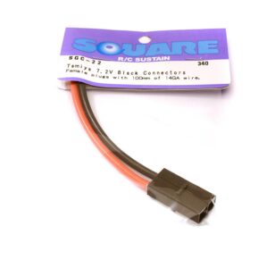 Square R/C Tamiya 7.2V Black Connectors (Female plugs with 100mm of 14GA wire.)