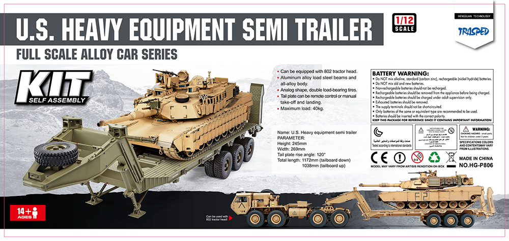 HG-P806 Military Semi Trailer Model Kit, Type U.S. M747 1/12 Scale