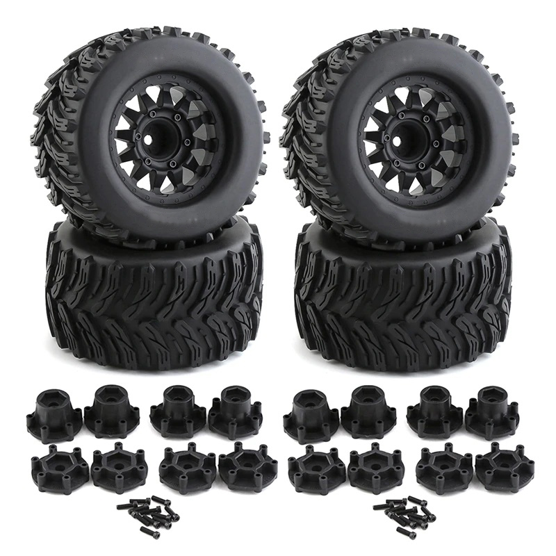 Off-Road 1/10 Size Wheel for 12mm & 14mm Hex & Tire Set (4) OD=125mm W=67mm