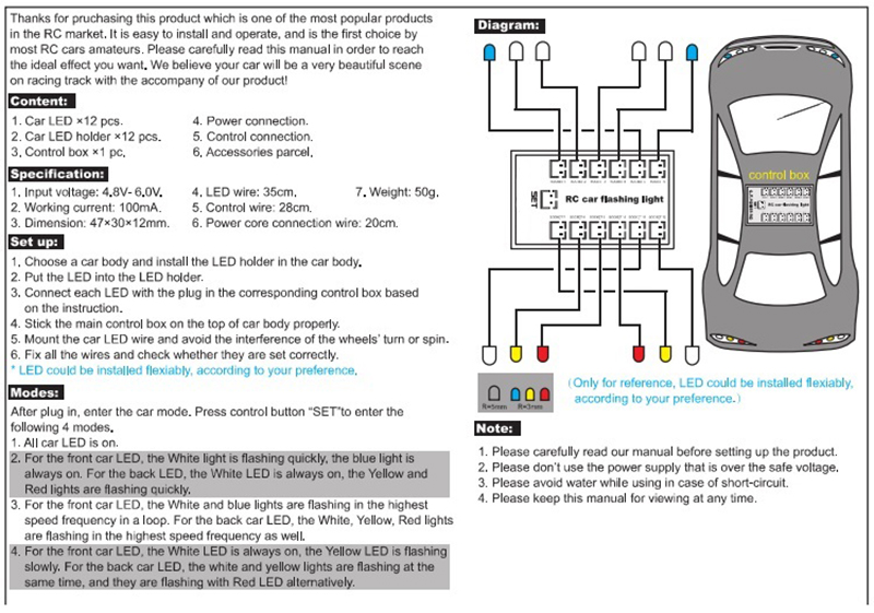 Complete 12 LED Lighting System w/ Flash Mode for 1/10 Scale RC Vehicles