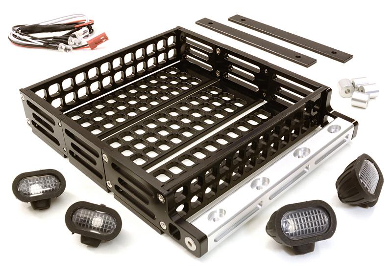 Realistic 1/10 Scale Alloy Luggage Tray 124x107x24mm with 4 LED Spot Light Set