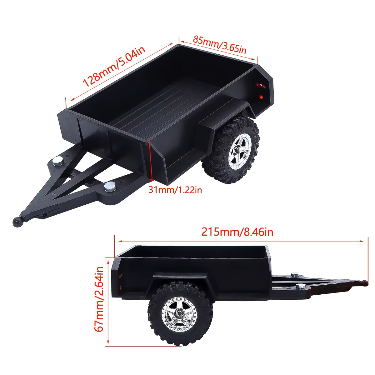 Red Plastic Mini Trailer Kit for 1/18 to 1/24 Scale RC Cars, 215x124x67mm