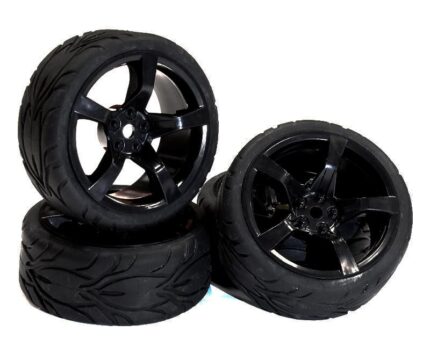 5 Spoke Complete Wheel & Tire Set (4) for 1/10 Touring Car W=26mm Offset 2.5mm